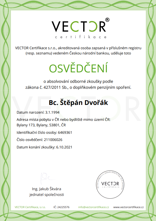 Mé jméno je Štěpán Dvořák. Jsem finanční poradce s několikaletou praxí a z pozice oblastního ředitele vedu svůj tým.