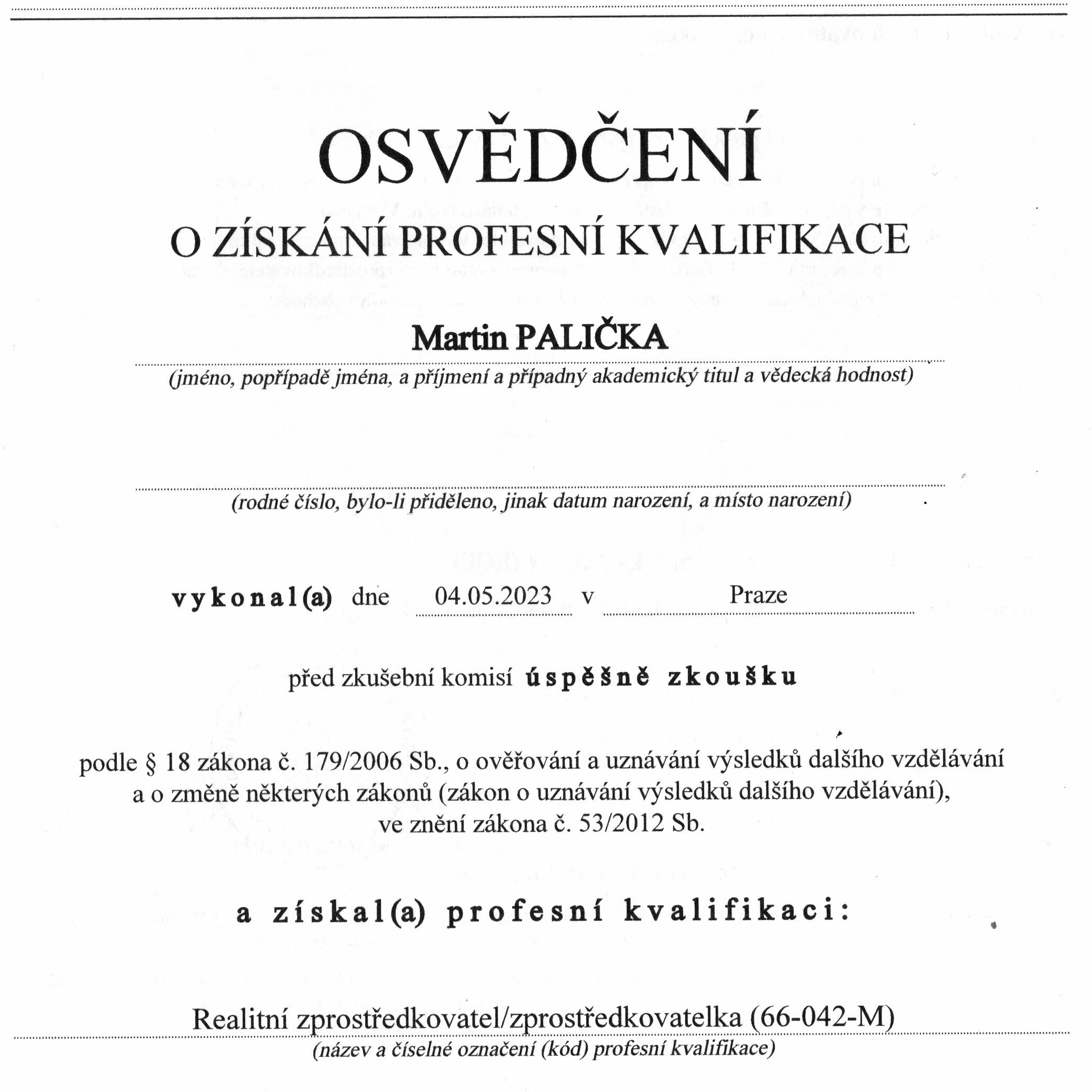 Úvodem chci poznamenat jedno: když dva dělají totéž není to totéž. Kéž by na realitním trhu bylo více Martinů Paličků. Spolupráce s panem Paličkou byla skvělá transparentní a férová. Když si přijel nemovitost převzít do inzerce prošel ji sennou poradil co by bylo dobré udělat pro lepší inzerci. Dohodnuté věci zařídil. Prodej nemovitosti řešil dle zpětné vazby od zájemců tak aby bylo dosaženo požadovaného cíle zadavatelem (mojí maličkostí). Děkuji za odvedenou skvělou práci.